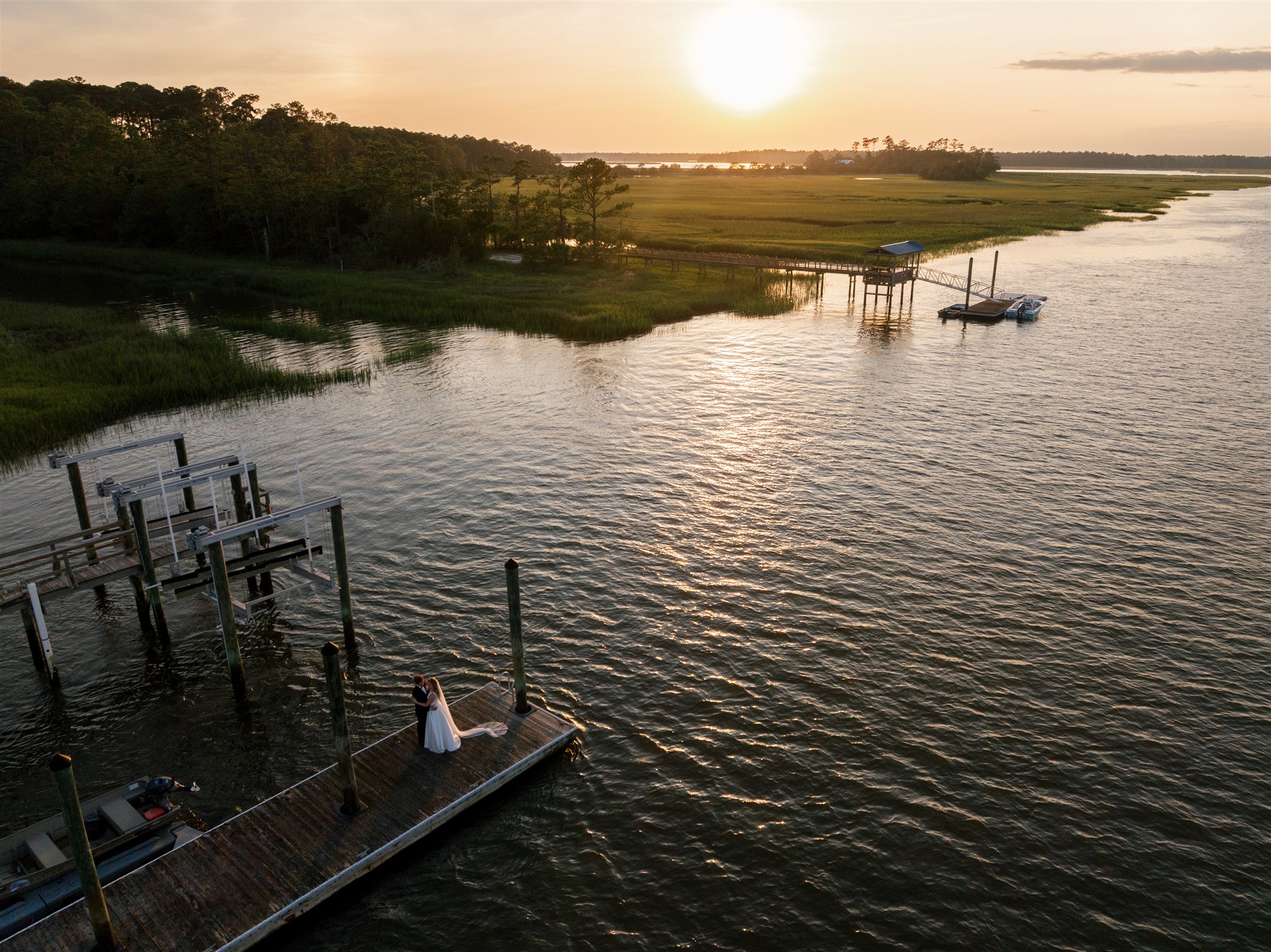 I was able to capture phenomenal drone footage of Sydni and Guy during this time, with the water, the sunset, and the open air space all coming together perfectly. It was the ideal setting to end such a meaningful day.
