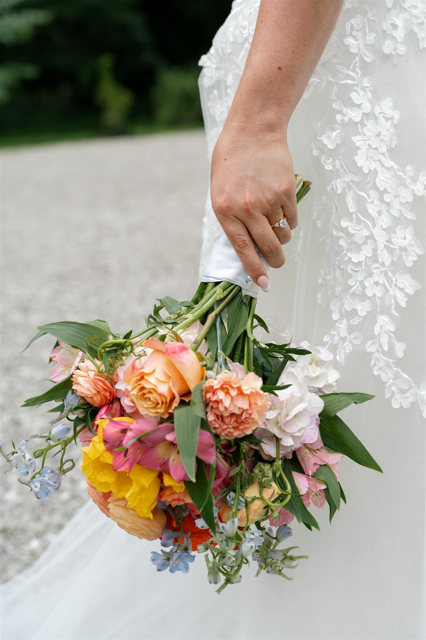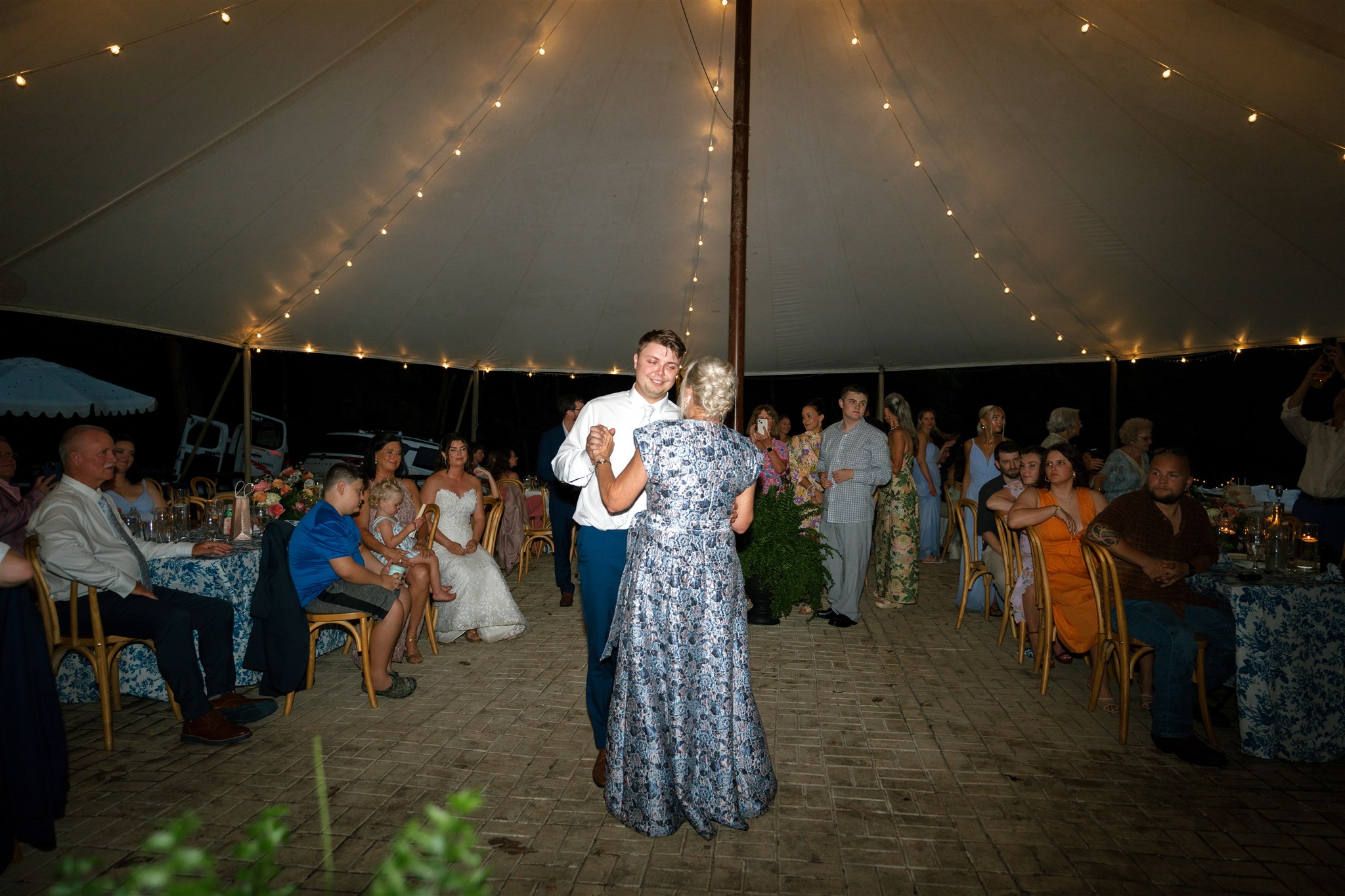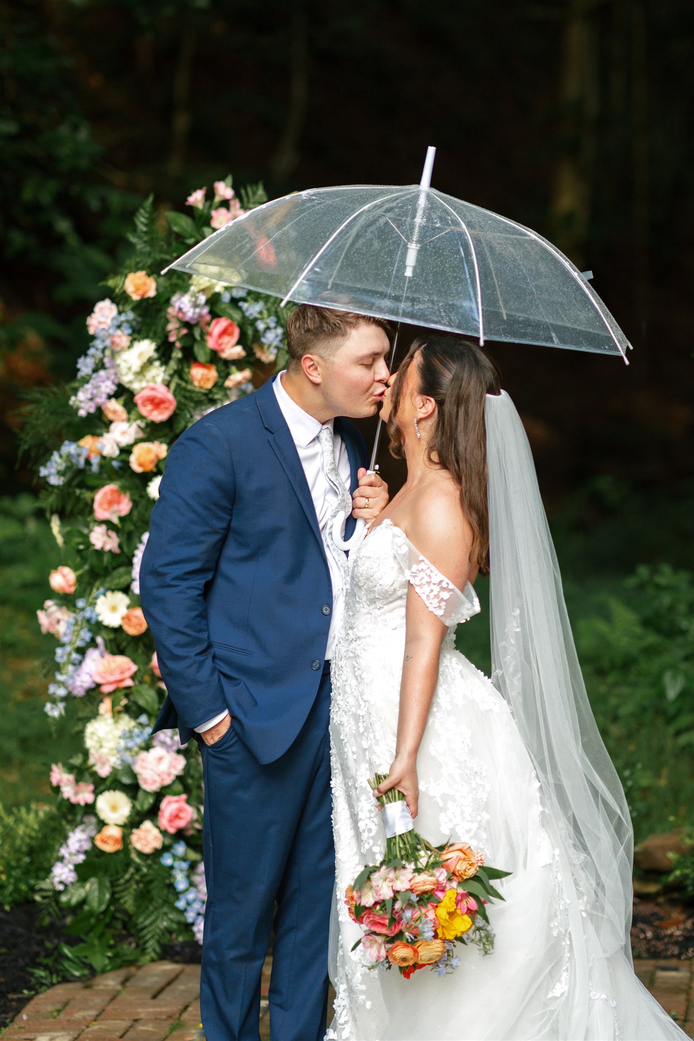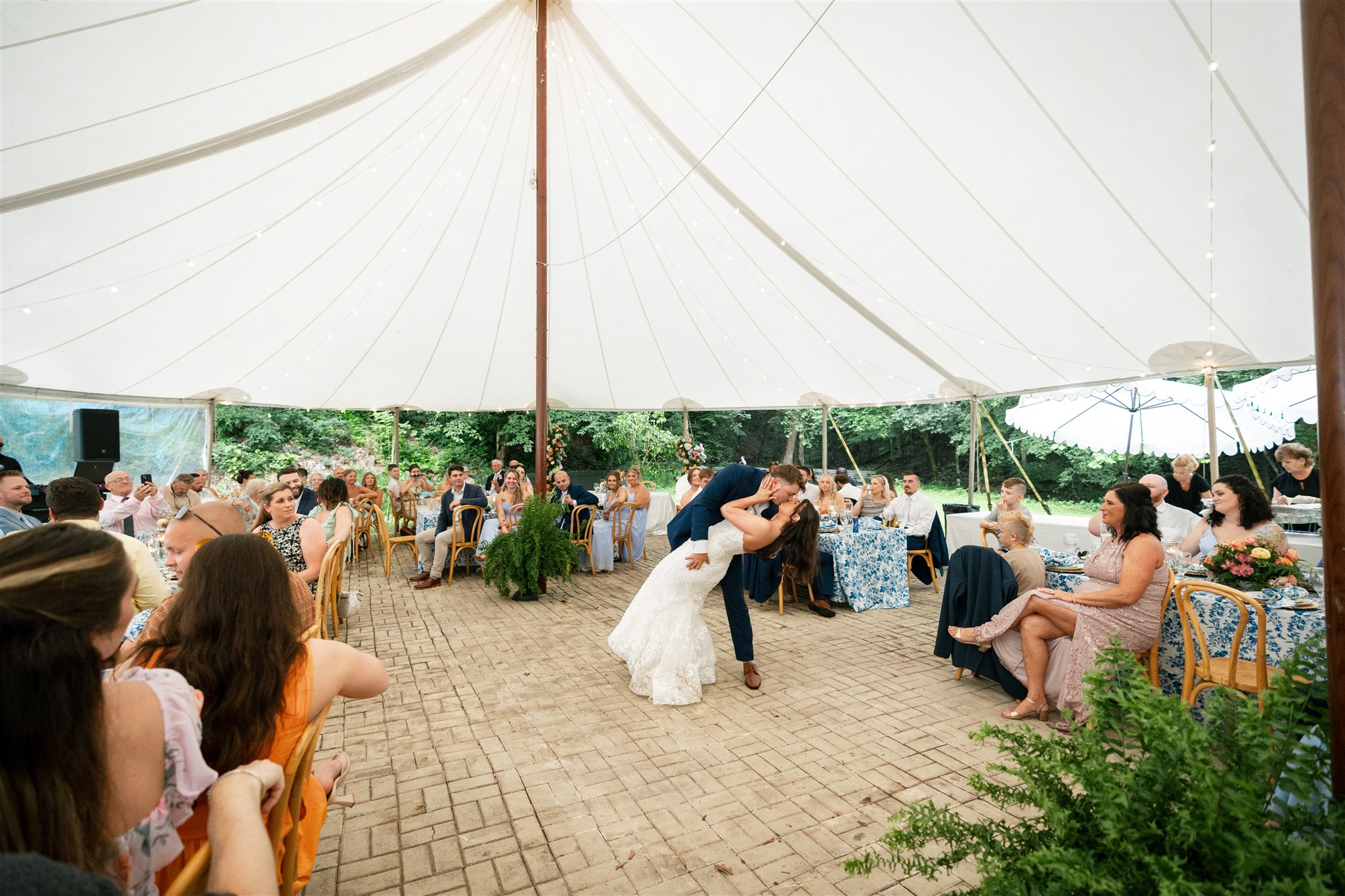 The day itself was absolutely gorgeous. Just before the ceremony, we experienced a quick downpour of rain. Rather than stress, everyone took a breath and waited it out together. As luck would have it, the rain passed quickly, leaving behind the richest green tones throughout the forest. When Hannah finally walked down the aisle, she did so surrounded by lush trees and softened light, and it was nothing short of magical.