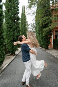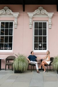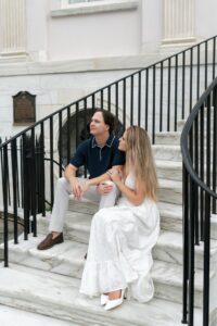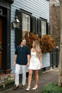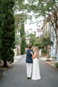 We met in the heart of the city and spent our time wandering through some of Charleston’s most charming streets. Cobblestone paths colorful homes and soft coastal light created the perfect backdrop for a session that felt effortless and genuine from start to finish. The weather truly could not have been better. Clear skies comfortable temperatures and that classic Charleston glow that photographers dream about.