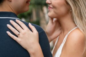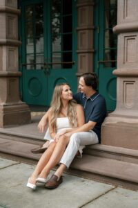 Danielle and Josh both looked incredible and more importantly they were completely at ease together. From quiet moments tucked along side streets to laughter filled strolls through downtown every part of the session felt natural and unforced. It was less about posing and more about letting them be themselves and letting the city wrap around them.