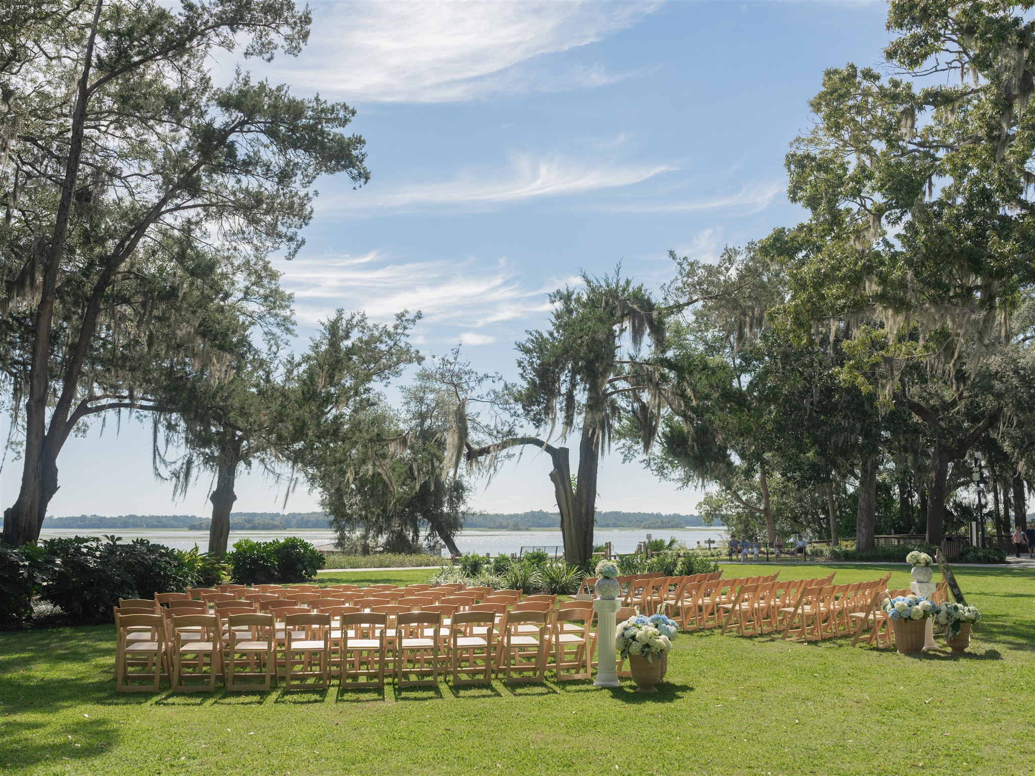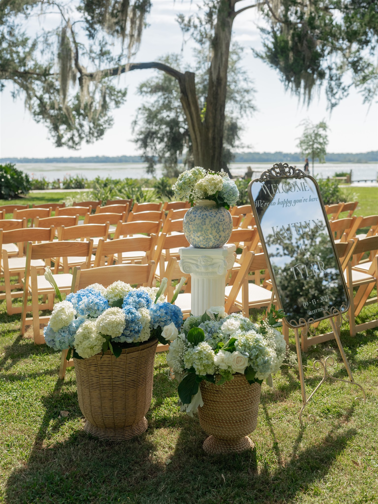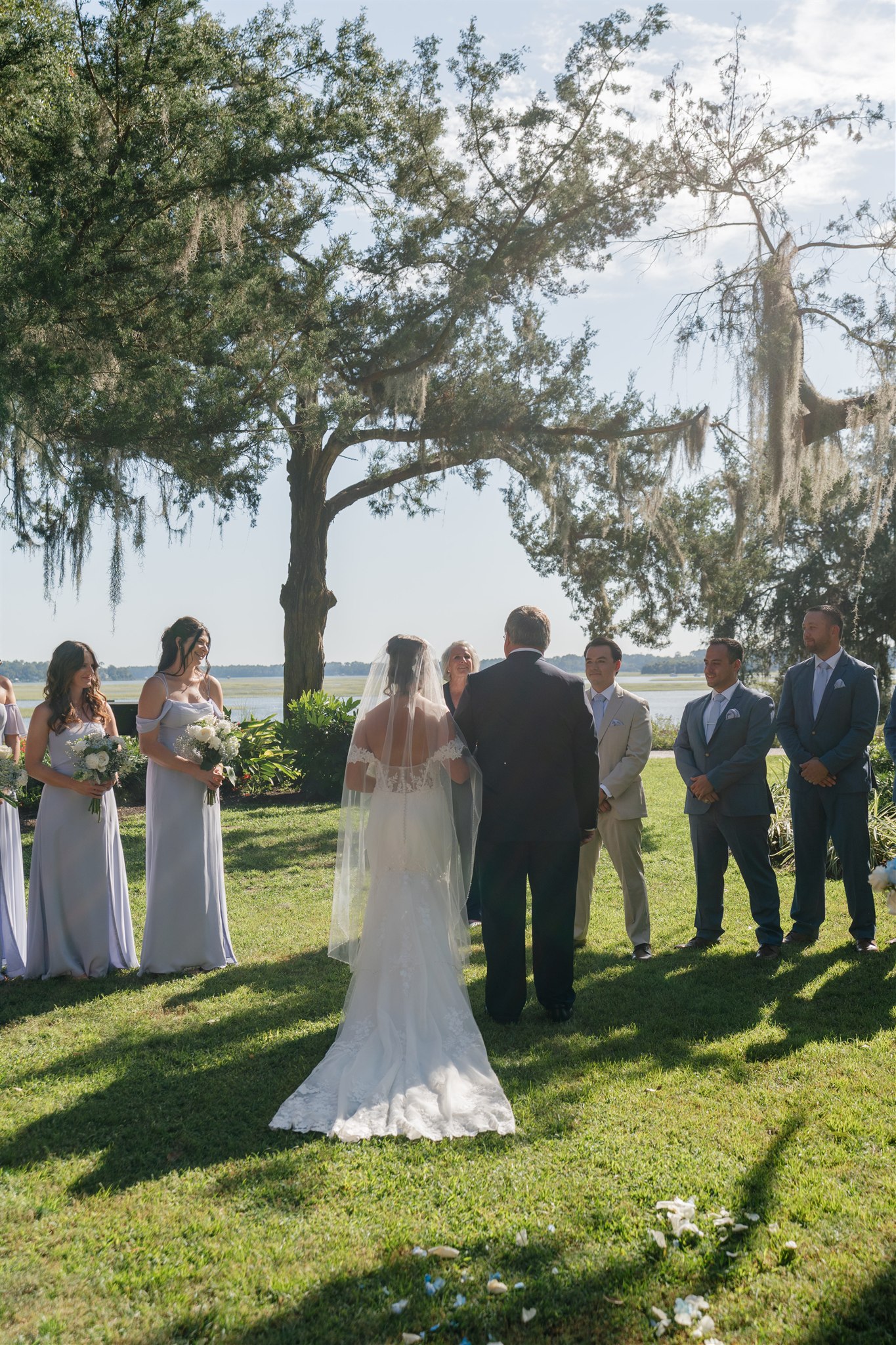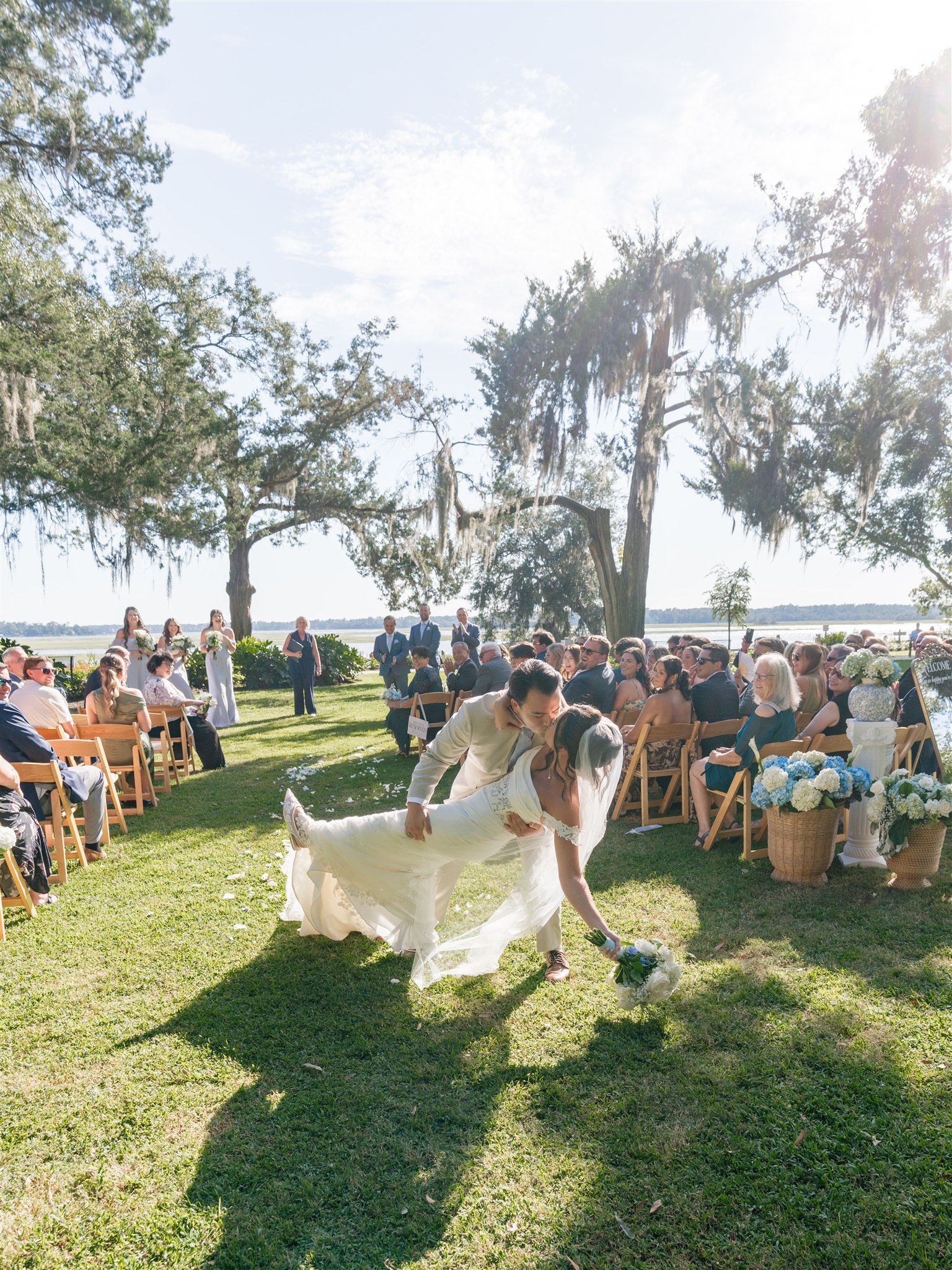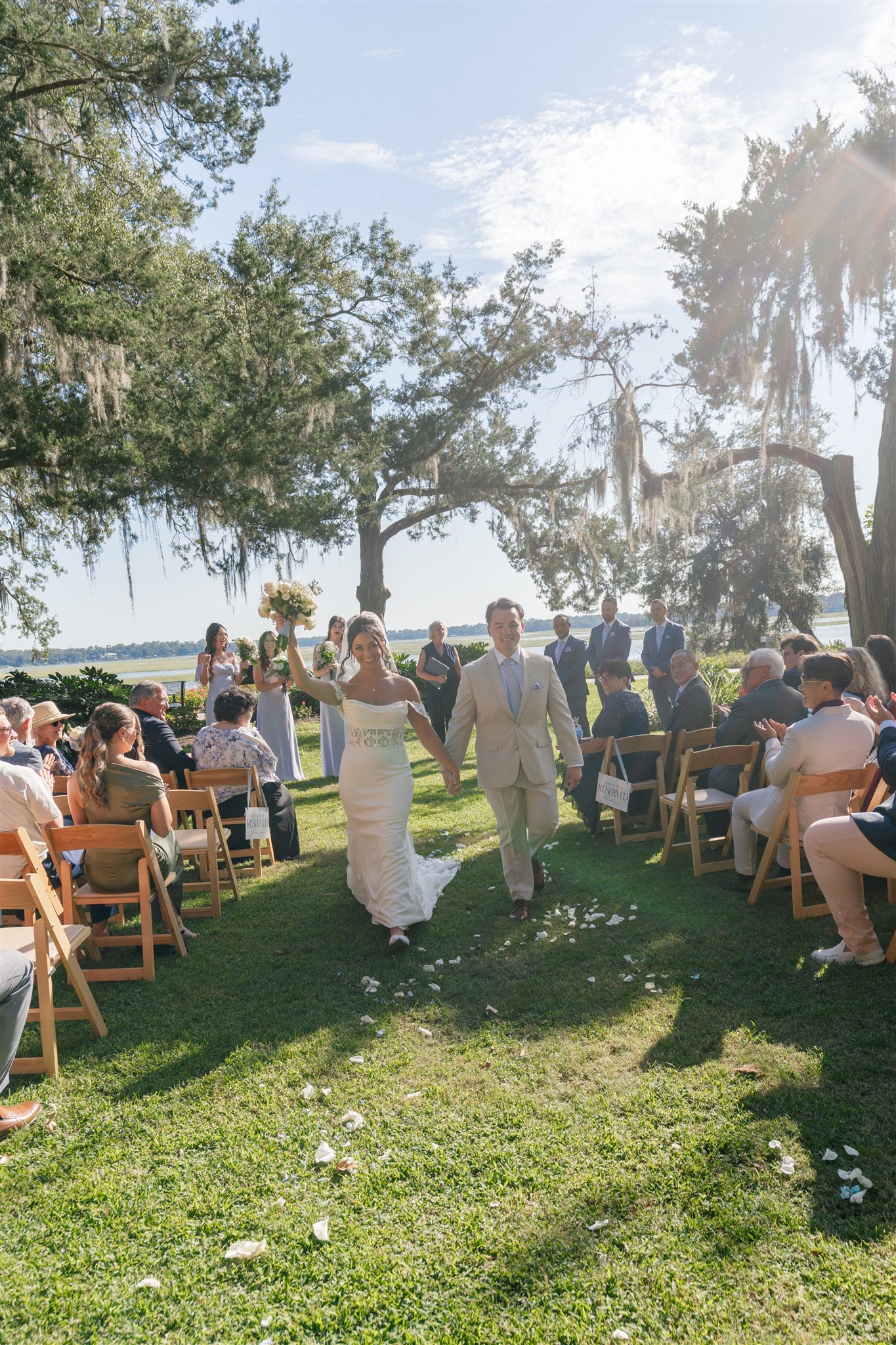 Their ceremony took place at Wright Family Park on the lawn overlooking the water. With the river stretching behind them and sunlight shining across the scene, it was a breathtaking place to exchange vows. Friends and family gathered close as Kaitlyn and Tyler promised forever, surrounded by the natural beauty of the Lowcountry and the people who mean the most to them. Every moment felt genuine and heartfelt, the kind of ceremony that reminds you how powerful simple and meaningful can be.